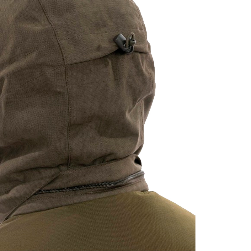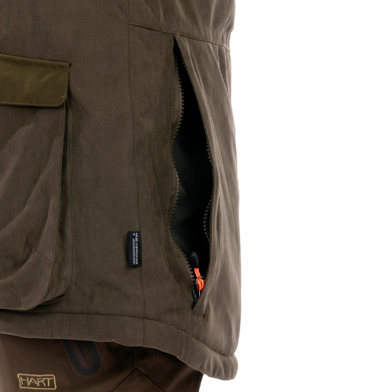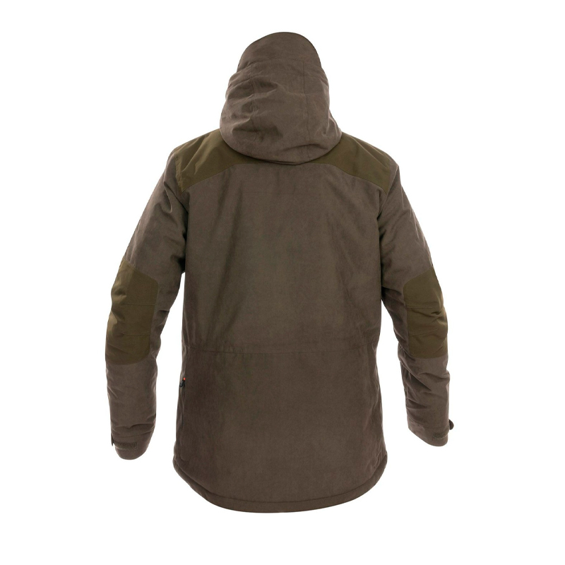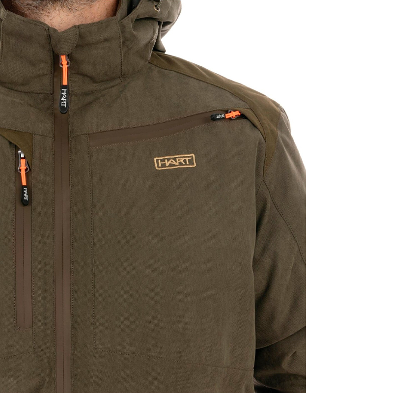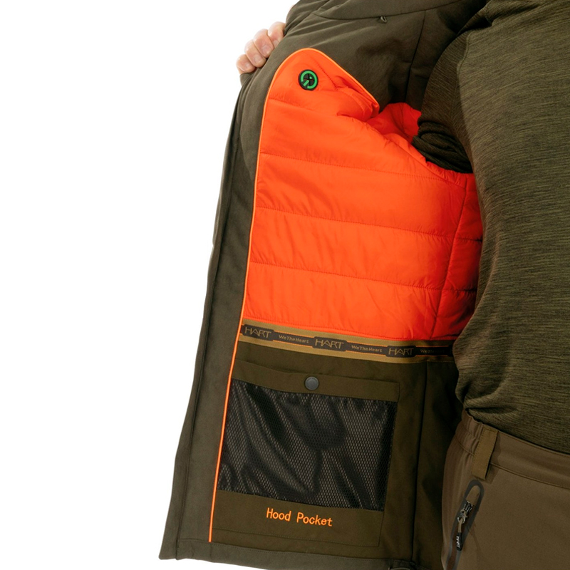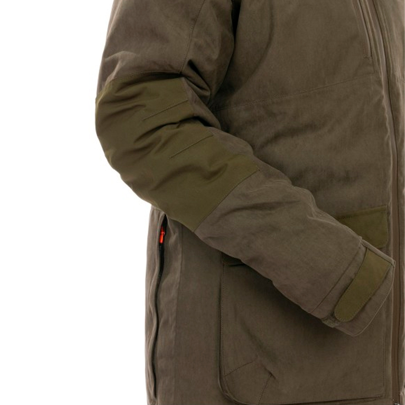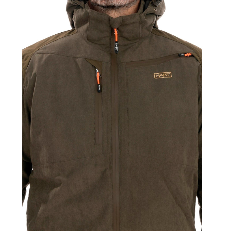 Construcción en tejido micro-toplon silencioso pero resistente con refuerzos de tejido de nailon 500D en hombros y codos. Los bolsillos con cremallera en el pecho cubren toda la parte delantera de la prenda para permitir una mayor capacidad de almacenamiento y ocultar bolsillos específicos para radio/GPS y dispositivos móviles. Todos tus accesorios estarán a mano pero protegidos de enganches no deseados en los arbustos. Los bolsillos para radio/GPS y móvil tienen un puerto multimedia en el interior para auriculares (con loop para guiarlos por el cuello). Los bolsillos cargo inferiores delanteros aumentan aún más la capacidad de almacenamiento. Morral trasero con cremallera. Capucha ajustable desmontable con cremallera. Bolsillo interior en el pecho con cremallera y bolsillo de malla para capucha cuando está desmontada. Alta impermeabilidad (10000 mm) y transpirabilidad (10000 gr/m2).