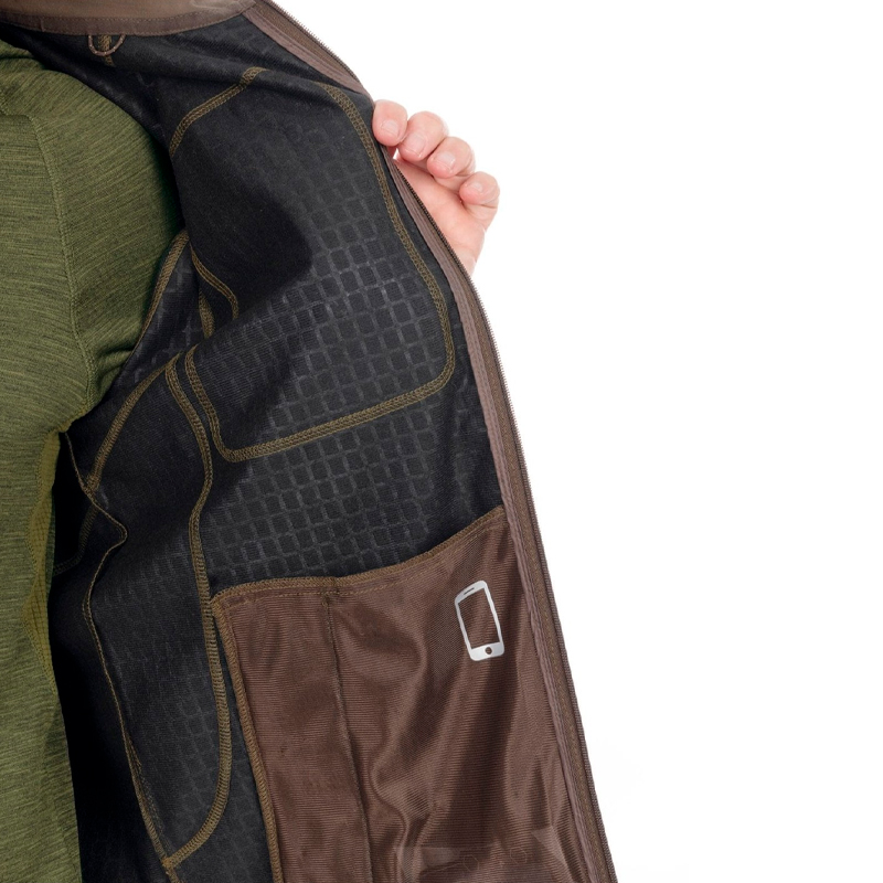 Confeccionada con un tejido silencioso, elástico bi-direccional y con una capa de grafeno en el interior. El grafeno regula la temperatura de tu cuerpo y actúa como un filtro entre tu piel y el medio ambiente, expulsando el calor en tiempo cálido y preservando y distribuyendo uniformemente el calor corporal en tiempo frío. Corte ergonómico y entallado. Válido tanto como capa intermedia o exterior. Bolsillos exteriores con cremallera: 1 en pecho y 2 en bajo. 2 bolsillos interiores abiertos para radio/GPS/teléfono, con loop en el cuello para guiar los auriculares.