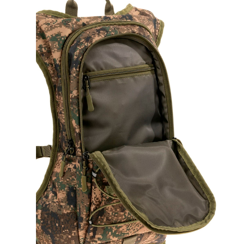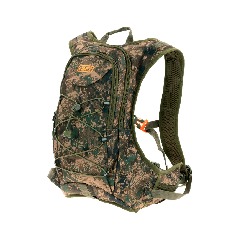 Tejido de camuflaje impermeable, ligero, resistente y súper silencioso. Su forma envolvente aporta estabilidad. Perfecta para la caza de la becada, la perdiz y la codorniz con perro o para cualquier actividad al aire libre como caminatas rápidas.