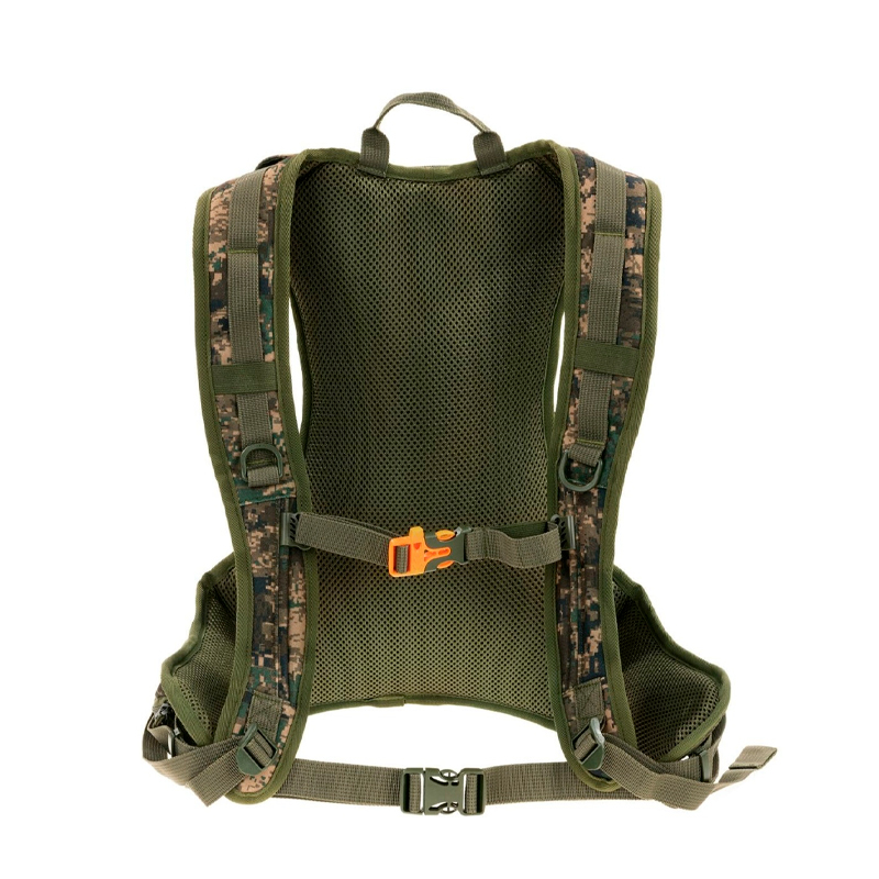 Cordones elásticos cruzados al frente para carga adicional. Sistema de respaldo acolchado de espuma transpirable.