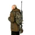 Altura adaptable mediante tirantes regulables, correa ajustable deslizante para el pecho con silbato de emergencia, y cinturón con ceñidores. Equipado con un sistema frontal de fácil acceso para la sujección del rifle: bolso ajustable y retráctil en el bolsillo inferior para sujetar y ajustar de forma segura la culata del rifle además de dos piezas de neopreno Safe Guard para abrazar y sostener con cuidado el guardamanos y la mira del rifle y sujetarlo en la mejor posición.