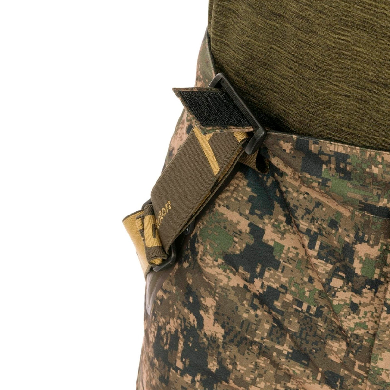 Bolsillos frontales con cremallera impermeable brindan un almacenaje seguro, mientras que su cálido forro protege tus manos del frío. Bolsillo trasero con cremallera impermeable. Polaina interior integrada con gancho de fijación para un sellado impermeable y seguro alrededor de las botas. Cintura con banda elástica ajustable que permite un ceñido personalizado para adaptarse a diferentes capas a lo largo de la temporada. Cremalleras laterales a lo largo de toda la pierna que permiten gran ventilación y un fácil cambio de prendas en el campo. Sistema de tirantes desmontable de 3 puntos que mantiene cómodamente los pantalones en su lugar durante todo el día. Las piezas de cordura en la cara interior de los tobillos protegen los pantalones de las botas.