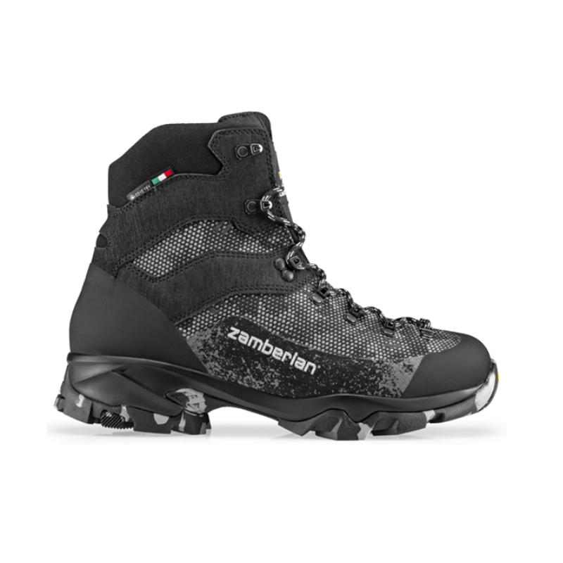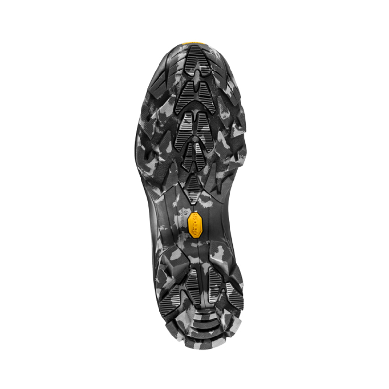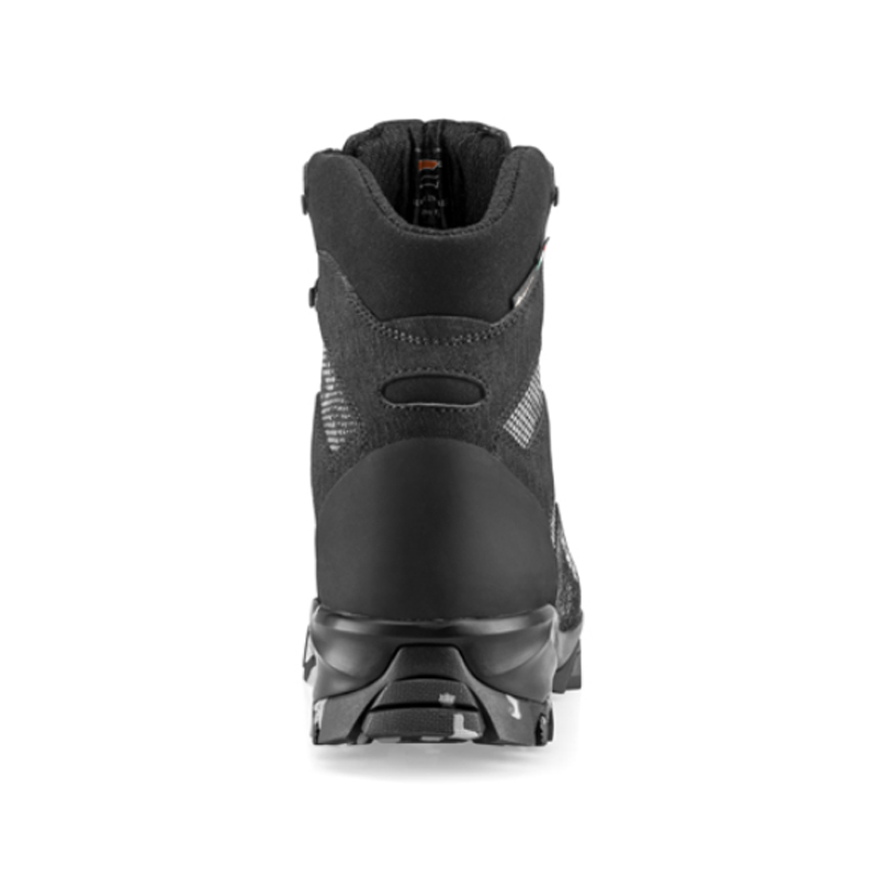 El corte combina tejido Jacquard reciclado con insertos de microfibra resistentes a la abrasión, creando una estructura ligera, transpirable y flexible, capaz de resistir espinas, zarzas y matorrales. El reborde protector de goma 360°, con diseño camuflaje y refuerzos de PU con acabado rugoso, protege la bota de rocas y vegetación densa. El forro GORE-TEX ePE Performance Comfort mantiene el pie seco y con una temperatura equilibrada en cualquier condición.