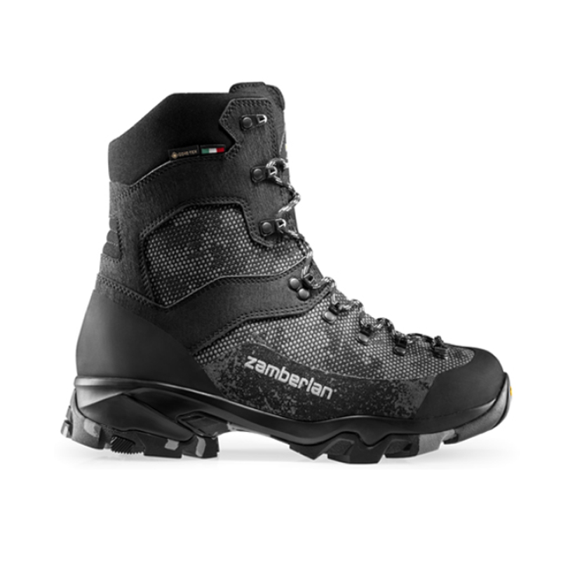 El corte combina tejido Jacquard reciclado con insertos de microfibra resistentes a la abrasión, creando una estructura ligera, transpirable y flexible, capaz de resistir espinas, zarzas y matorrales. El reborde protector de goma 360°, con diseño camuflaje y refuerzos de PU con acabado rugoso, protege la bota de rocas y vegetación densa. El forro GORE-TEX ePE Performance Comfort mantiene el pie seco y con una temperatura equilibrada en cualquier condición.